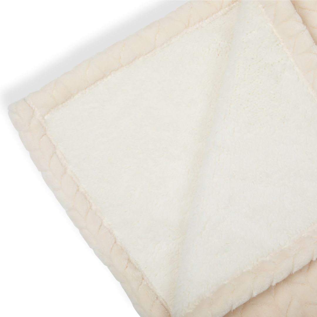 Outside: Plush fleece with a velvet feel Inside: Lined with faux Sherpa